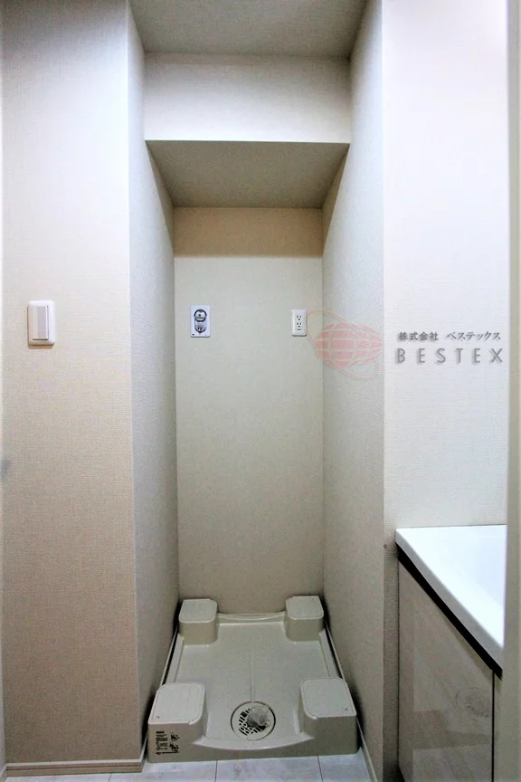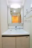 脱衣場を兼ねたパウダールームには独立洗面台と室内洗濯機置き場があります。