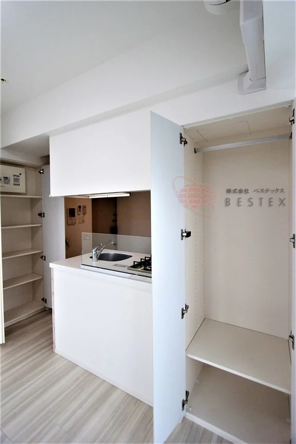 収納スペースも完備されておりますので、荷物にお部屋のスペースを取られること無く、お部屋本来の広さをご活用頂けます。フローリング仕様のためお掃除もらくちんです♪