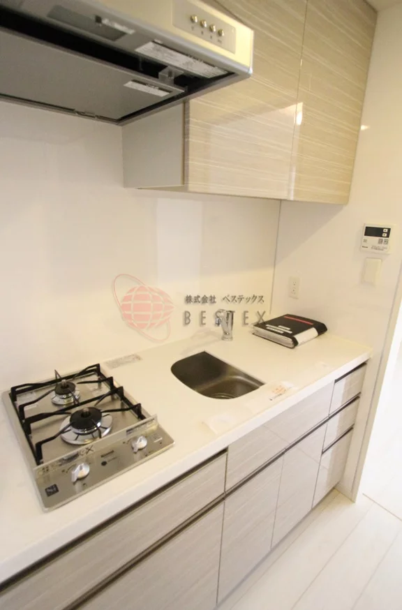 リビングダイニングキッチンは8.3帖。キッチンは2口ガスコンロが完備されたシステムキッチンとなり、調理スペースも確保されております。