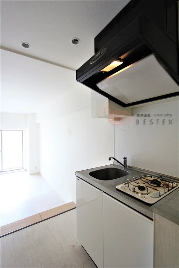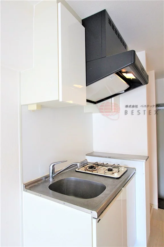 水回りはシンプルかつ機能的な設計になっており無駄なスペースはありません。キッチンは2口のガスシステムキッチンです。冷蔵庫置場がございます。