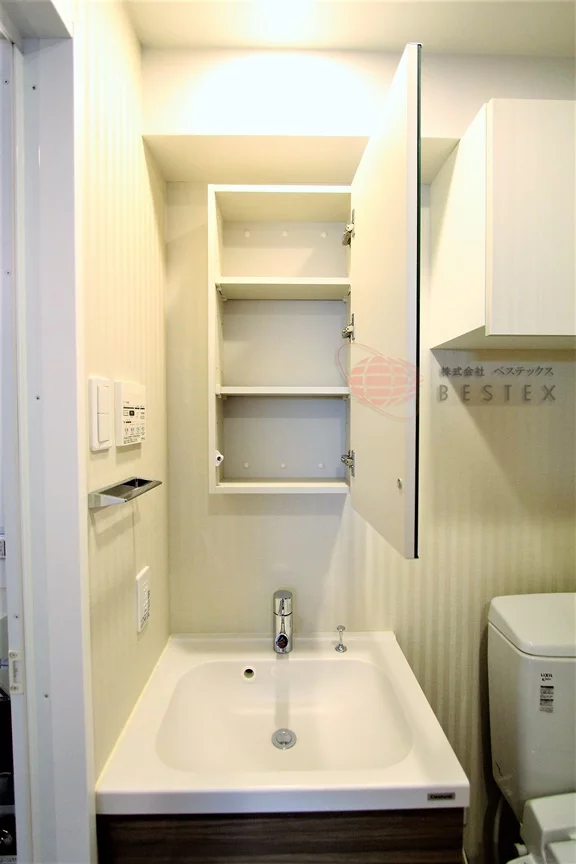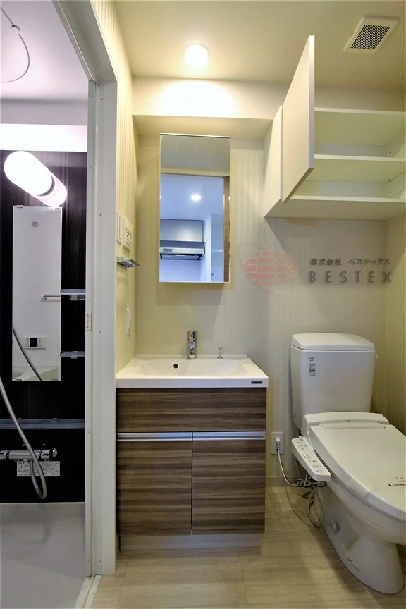 浴室の前には洗面室兼脱衣所があり、独立洗面台と室内洗濯機置き場を完備しております!