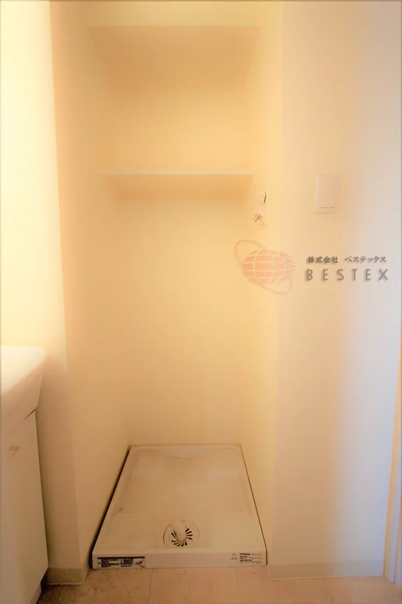 洗濯機置き場はもちろん室内にございます。独立洗面台の隣に位置しております。天候や時間帯を気にせず洗濯機をまわすことができます。