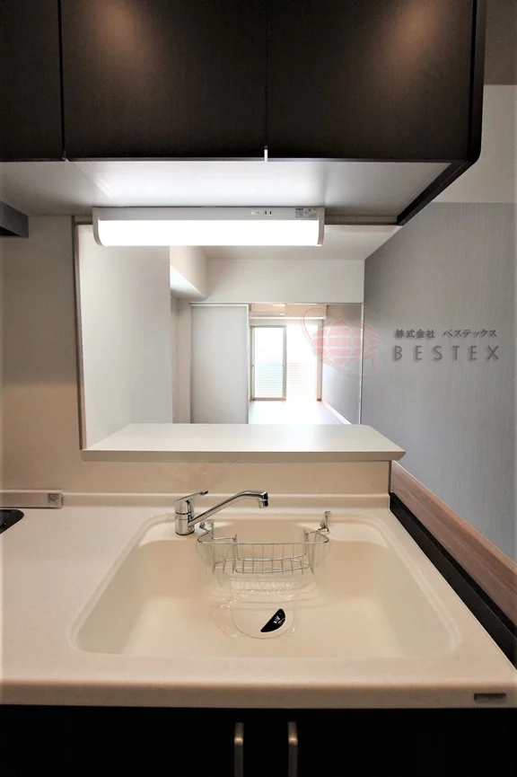 モダンなデザインのカウンターキッチン完備で、お料理も楽しく行えます。2口ガスコンロつきのシステムキッチンとなっており作業がしやすい造り♪