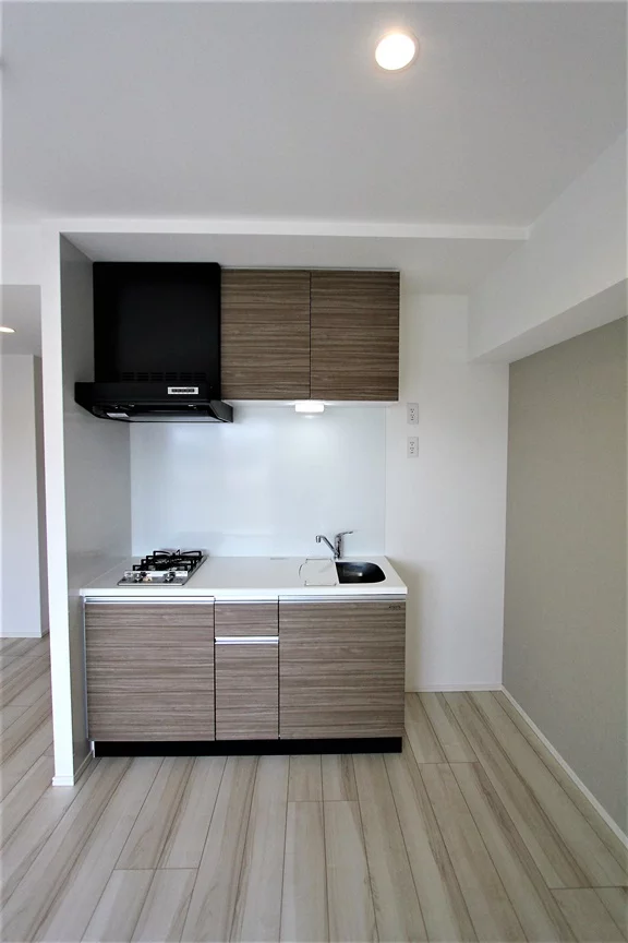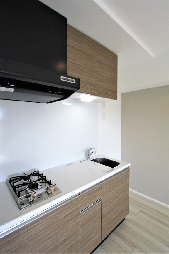 気になる水回りは、2口ガスコンロつきシステムキッチンがついています!お料理の時短にもなりますし、作業がスムーズにできます。キッチン収納も充実しており、木目調のおしゃれなデザインを採用したキッチンです♪