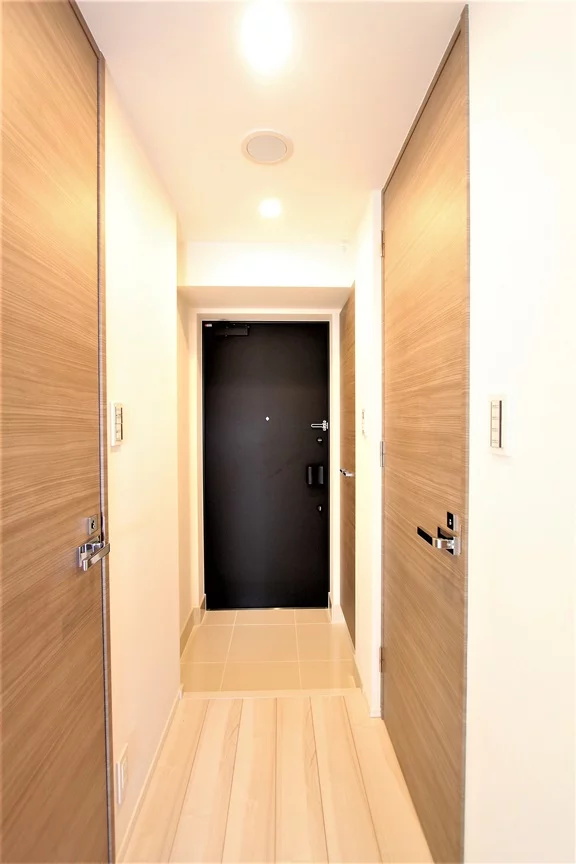 玄関ドアはダブルロックのディンプルキーを採用。さらにテレビモニターつきインターホンがあるので来訪者の顔を確認してからドアを開けられます。セキュリティ体制良好です。