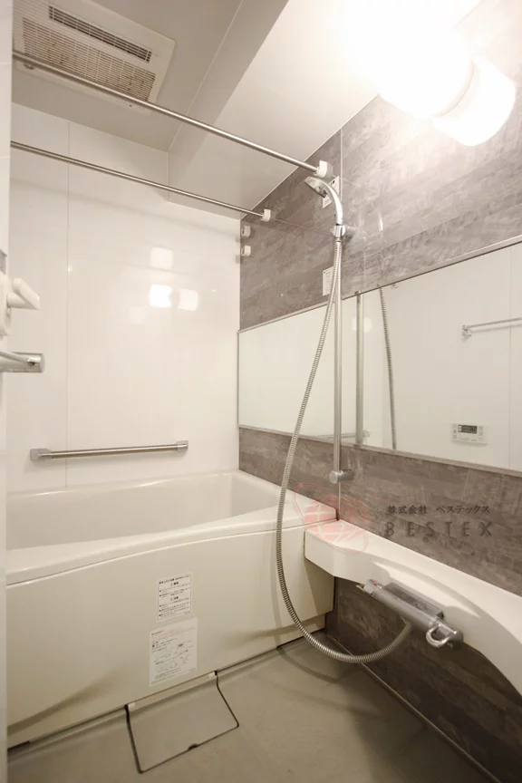 浴室は1116サイズのゆとりあるユニットバスで、浴室乾燥機も完備!雨の日でも浴室内で洗濯物が乾燥可能です♪