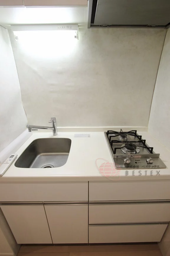 キッチンはガス2口コンロのシステムキッチンで、お料理好きの方にも嬉しい仕様!
