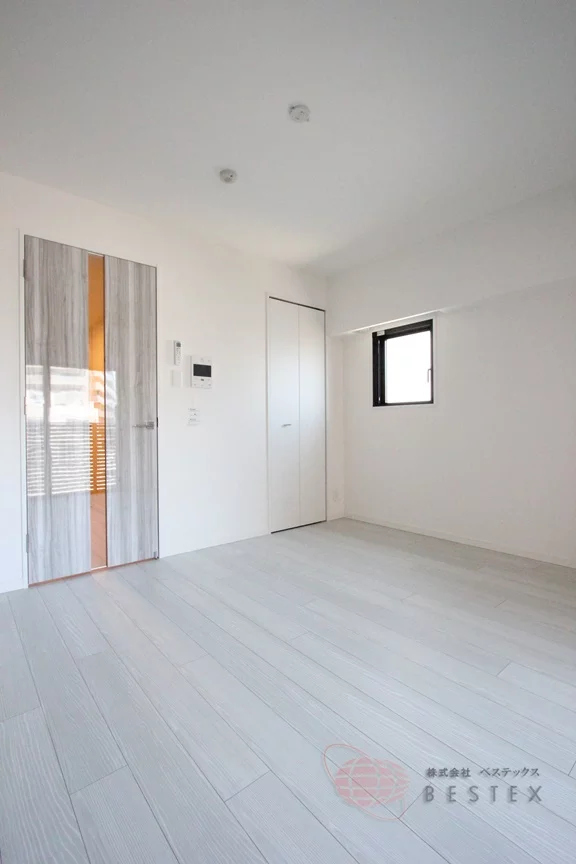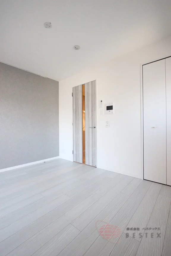 居室はフローリング貼りの洋室で約7.5帖。室内にはTVモニター付きインターホンも付いており、来訪者の顔も確認できて安心♪
