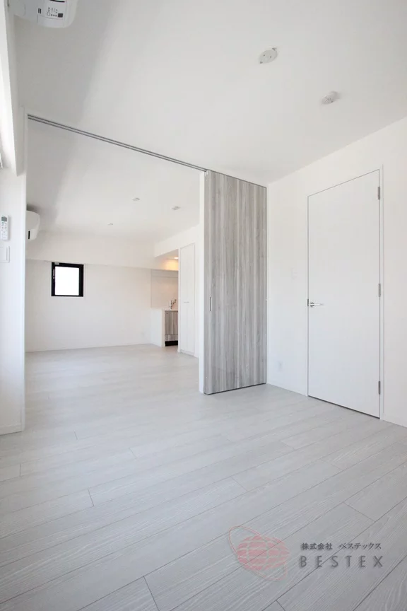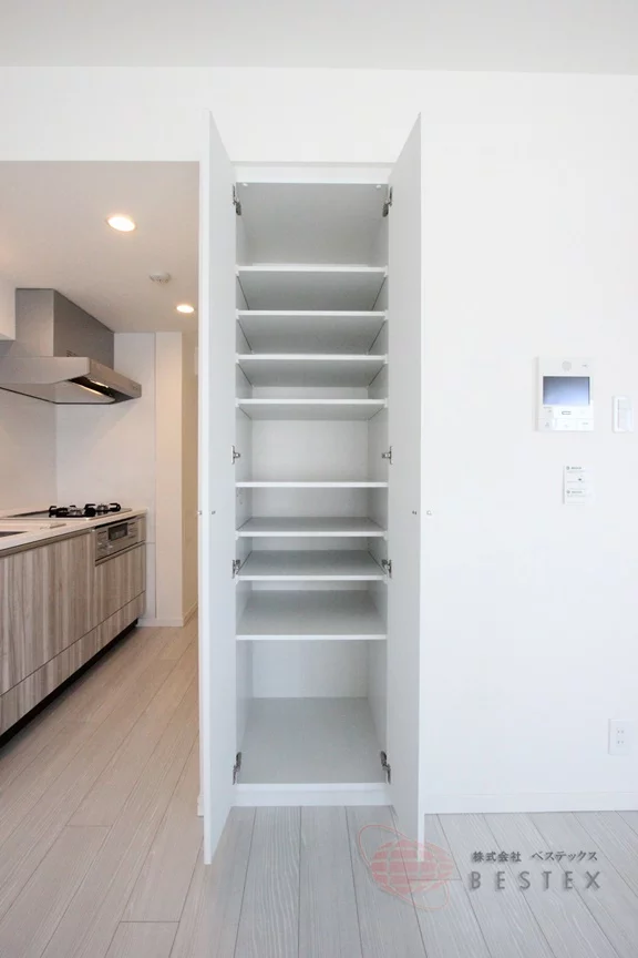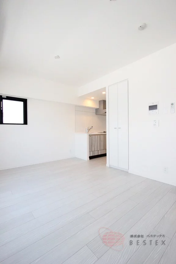 LDKは約10.6帖。リビングから奥まったキッチンスペースも広めで、食器棚などをおける余裕も御座います。