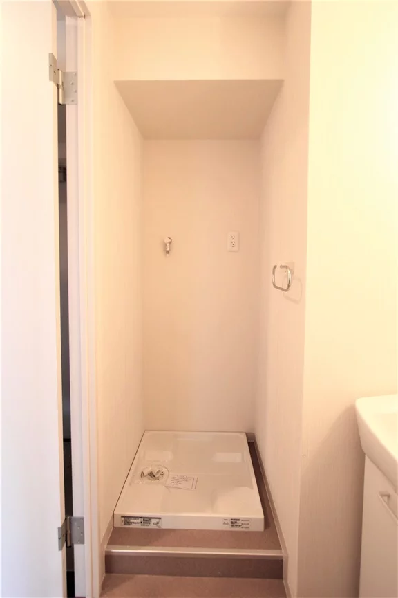 脱衣所には室内洗濯機置き場と洗面台が付いており、