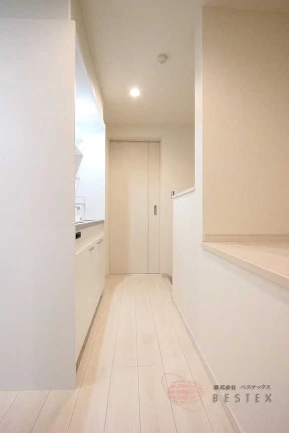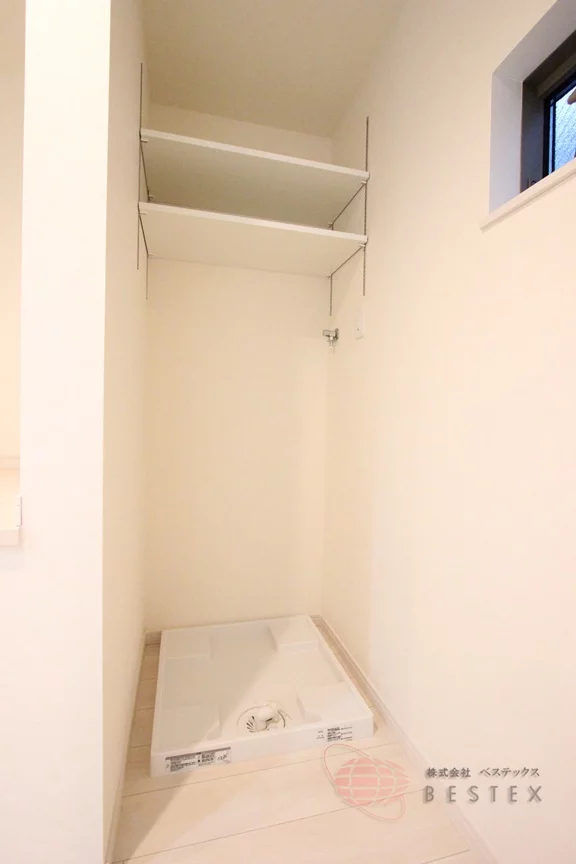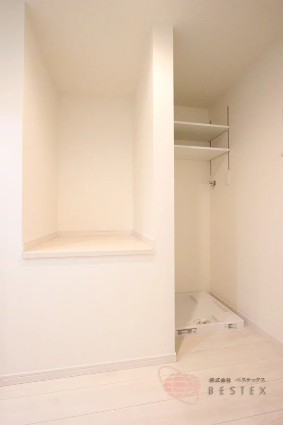 キッチンの奥には洗濯機置場があり、その隣には物置スペースも御座います。
