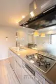 キッチンはシステムキッチン3口コンロ、グリル付きです。