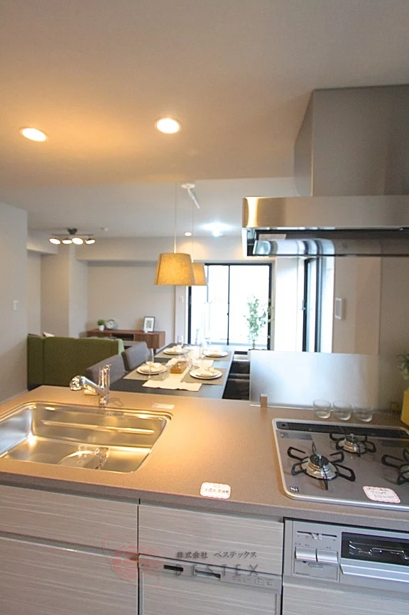 カウンターキッチン採用でLDK全体を見渡せるので、