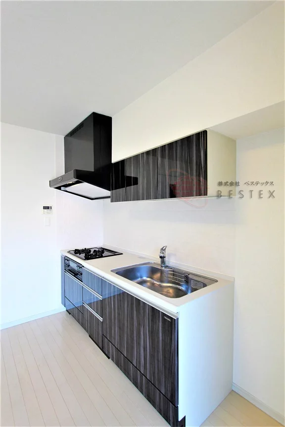 キッチンは3口ガスコンロが完備されたシステムキッチンとなっておりますので、不自由なくスムーズにお料理をお楽しみいただけます。