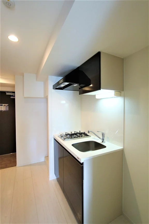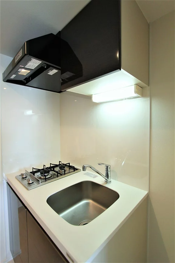 キッチンは2口ガスコンロが備わったシステムキッチンで、