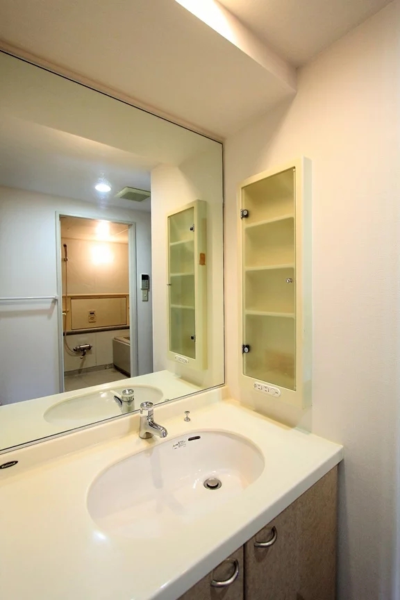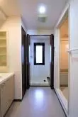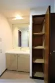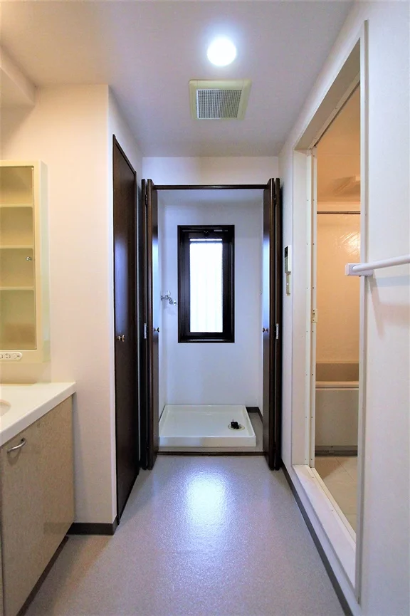 洗面スペースには独立洗面台、物入、洗濯機置き場(扉があり、不要時は目隠しになります)、またスペースも余裕があるのでパウダールームにも最適です♪