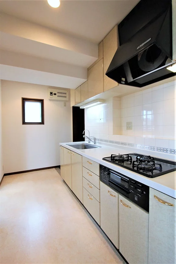 キッチンは3口ガスコンロのシステムキッチン!