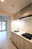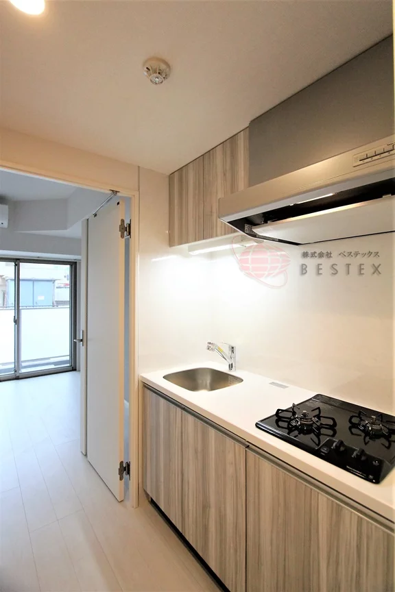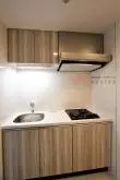 キッチンは2口ガスコンロのシステムキッチンで、お料理も快適です。システムキッチンの収納スペースもしっかりと備わっているので、食器類もスッキリと片付けられます!