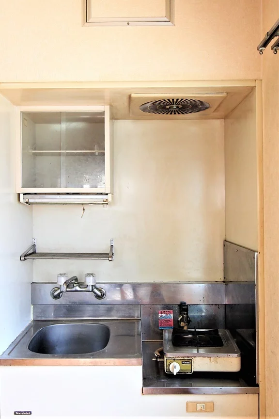 ガスキッチン、照明、エアコンが設置されてます。