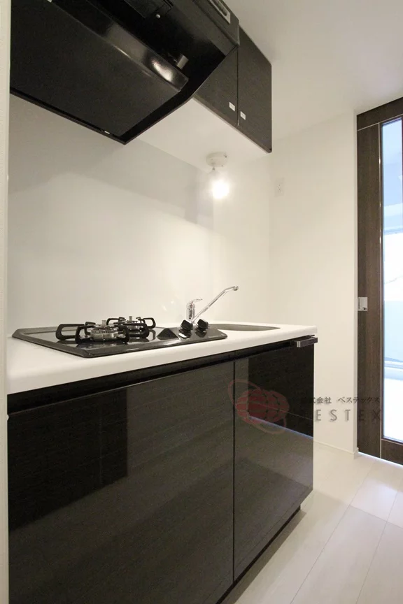キッチンはシステムキッチン2口コンロで、シンク・調理スペース共に広めの造りとなりますので家事がしやすい環境が御座います。収納もしっかりと御座います☆