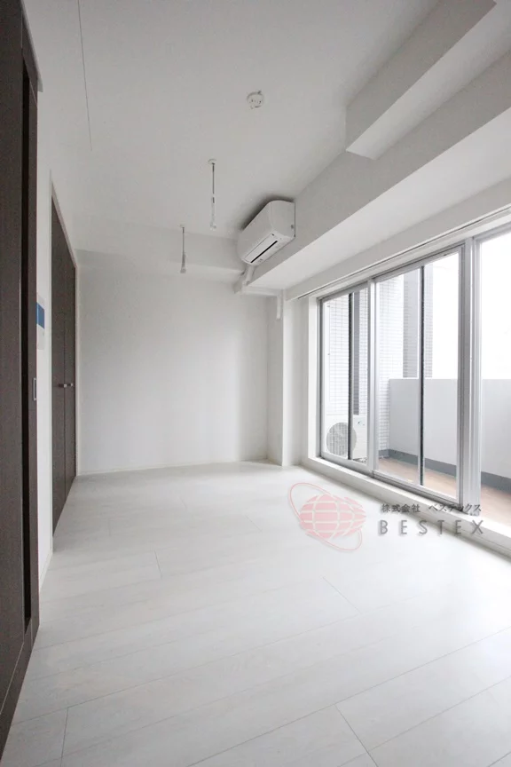 洋室は約7.5帖あり、ゆとりある空間で充実した生活を送ることが出来ます。1フロア2世帯で圧迫感など感じる事はないです!全住戸南向きで日当たりや開放感抜群です!エアコン完備で一年中快適に過ごすことが出来ますよ♪クローゼットもしっかりとありますのでお部屋をより有効的にご使用いただけます☆