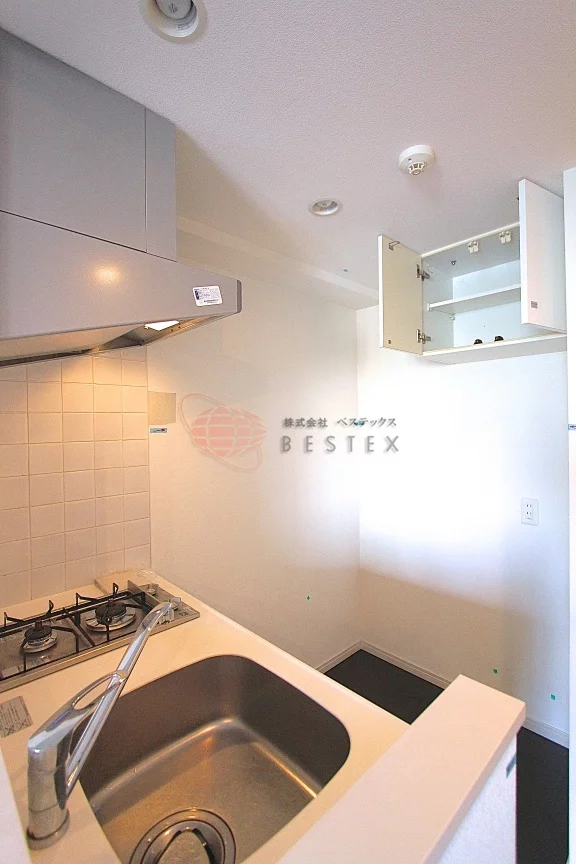 システムキッチンはガスの2口コンロを完備。