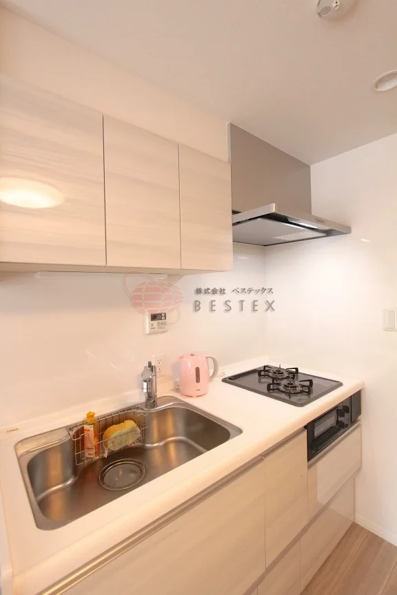 キッチンは自炊をする方には嬉しい2口ガスコンロのシステムキッチンを完備!