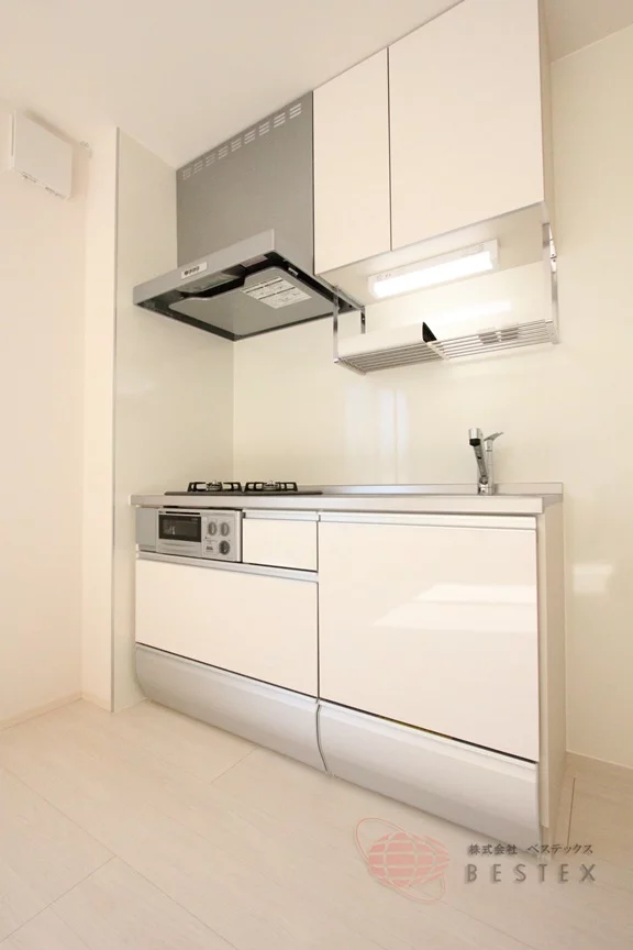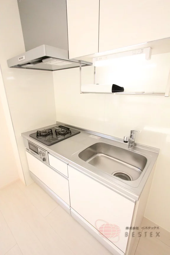 キッチンはグリル付き2口ガスコンロのシステムキッチン。