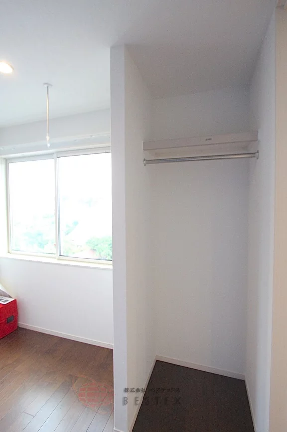 室内物干しがあり、雨の日には部屋干しができます!
