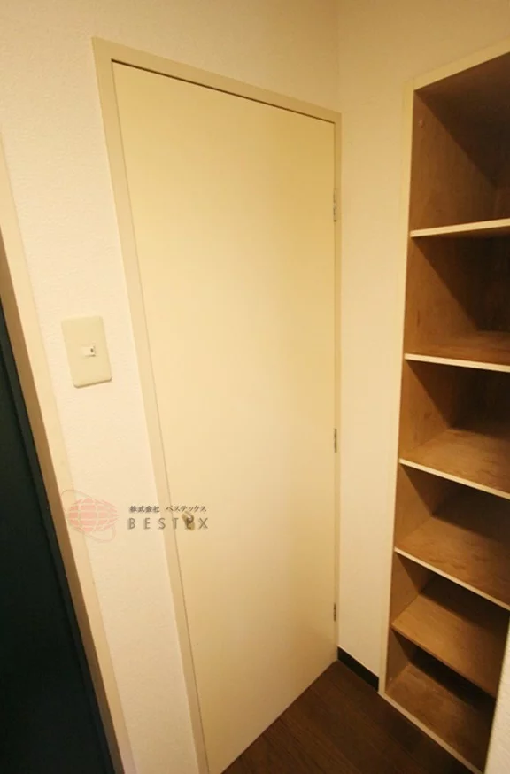 廊下部分には扉付きの物入れがございますので、