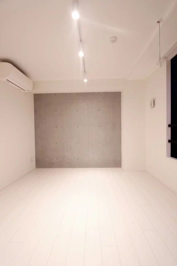 7.0帖のフローリング貼りの洋室は正方形に近い綺麗な形で家具類のレイアウトもしやすいです♪室内にはもちろんエアコンも設置済み。