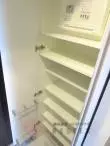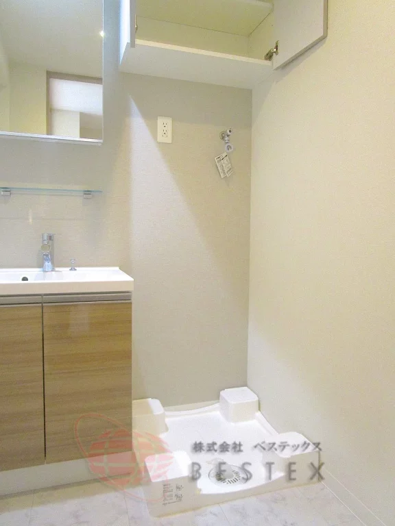 パウダールームは脱衣所を兼ねており、入浴時に廊下で着替える必要はありません。独立洗面台、室内洗濯機置き場、リネン庫のあるパウダールームは便利で快適♪