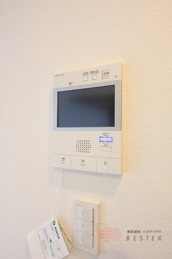 室内からはTVモニター付きインターホンで来客の顔も確認できて安心♪部屋干し用の室内物干し金物もあり、雨の日の洗濯物も大丈夫!