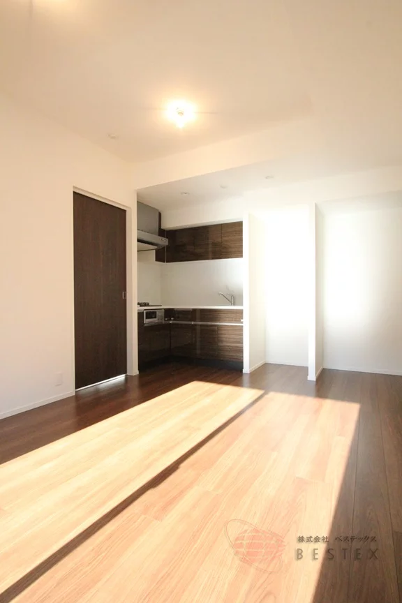 リビングダイニングは居室内の柱の出っ張りも少なく、家具類の配置も楽々♪ダイニングテーブルを置いても十分な広さが御座います!