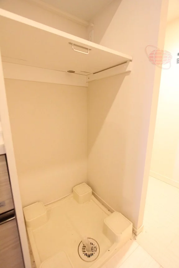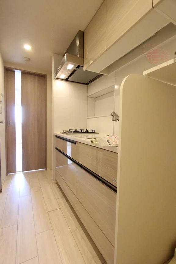 廊下部分には室内洗濯機置場もあり、隣の設置されたシステムキッチンには2口ガスコンロ付きでお料理も快適!