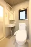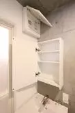 水まわりも、洗面室にトイレ・洗濯機置き場・独立洗面台があり、奥には浴室が御座います。
