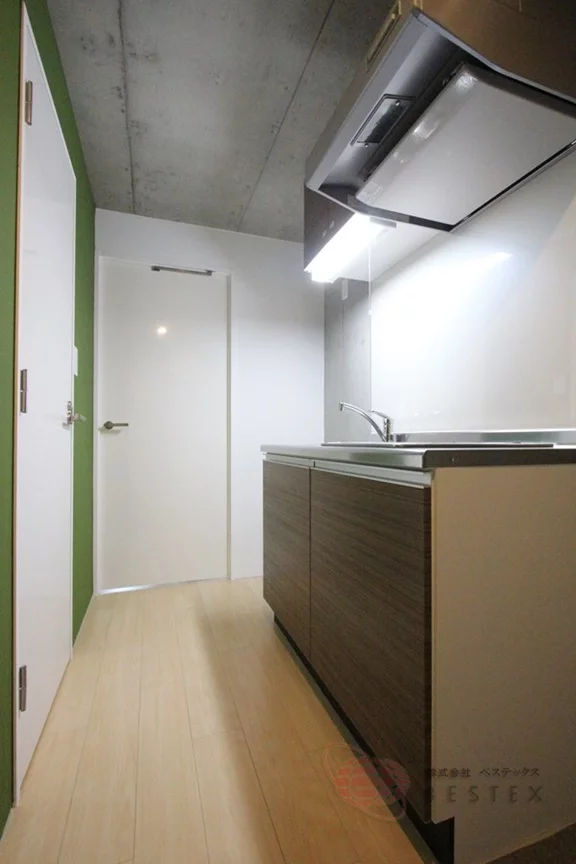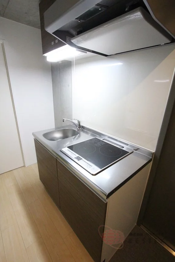 廊下部分のキッチンはIHクッキングヒーター2口のシステムキッチンで、収納スペースも一人暮らしとしては十分!お料理も快適に行なえます♪