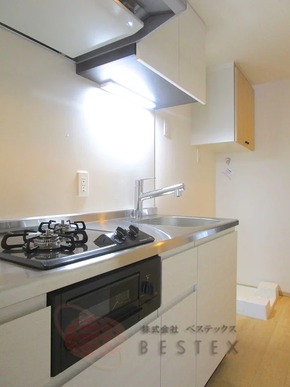 キッチンはシステムキッチン2口ガスコンロ・グリル付き!