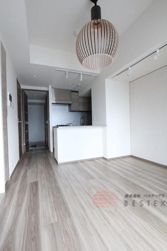 キッチンとはカウンターで隔てられ、カウンター下部には収納も御座います。システムキッチンにも収納スペースがあるので、キッチン周りの収納は充実!