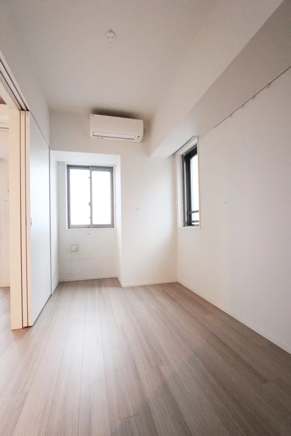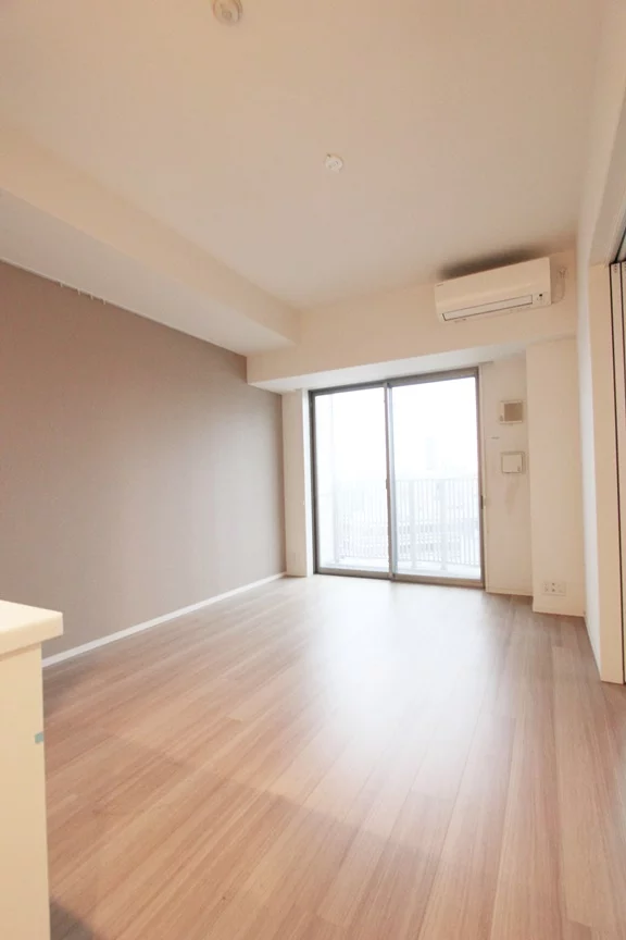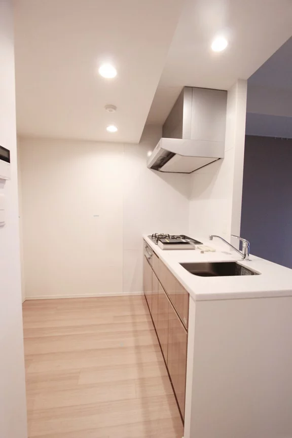 角部屋で居室は二面採光となっております。また、約12.4帖のリビング・約5帖の居室の両方にエアコンが完備しているので、季節問わず快適に生活を送ることができます。また目だった梁がなく使いやすい振り分けタイプとなります。キッチンは3口ガスコンロのカウンターキッチンでグリル付きとなっております。調理スペース・収納スペースも十分に確保されており、冷蔵庫・電子レンジもキッチンスペースに置けるので効率的にお料理を進める事ができます。