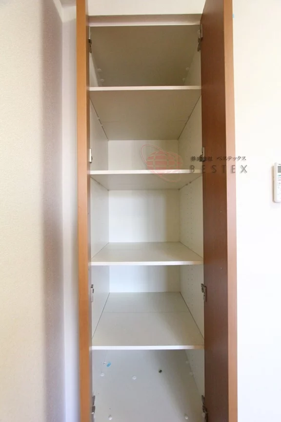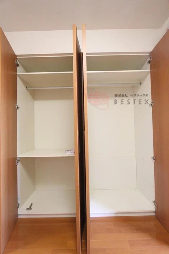クローゼットは幅広めのもので、別途物入れも付いております。