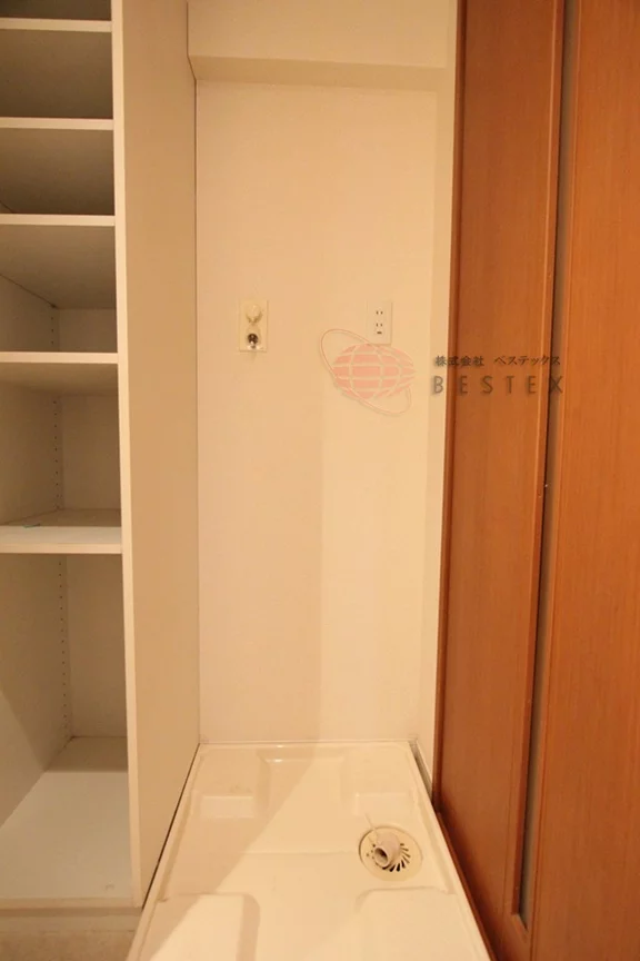 室内洗濯機置場も脱衣所内にあり、浴室乾燥機を使って洗濯物を干す際には
