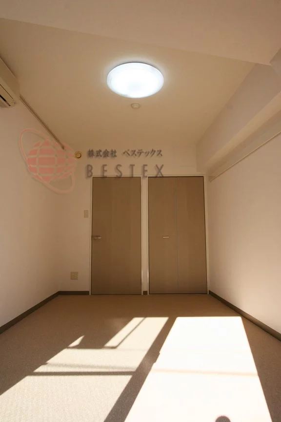 居室はカーペット調の洋室で約7.3帖。すこし余裕のある広さなのでベッドをはじめとした家具類も十分に配置可能です。もちろん、室内にはエアコンも設置済みです♪