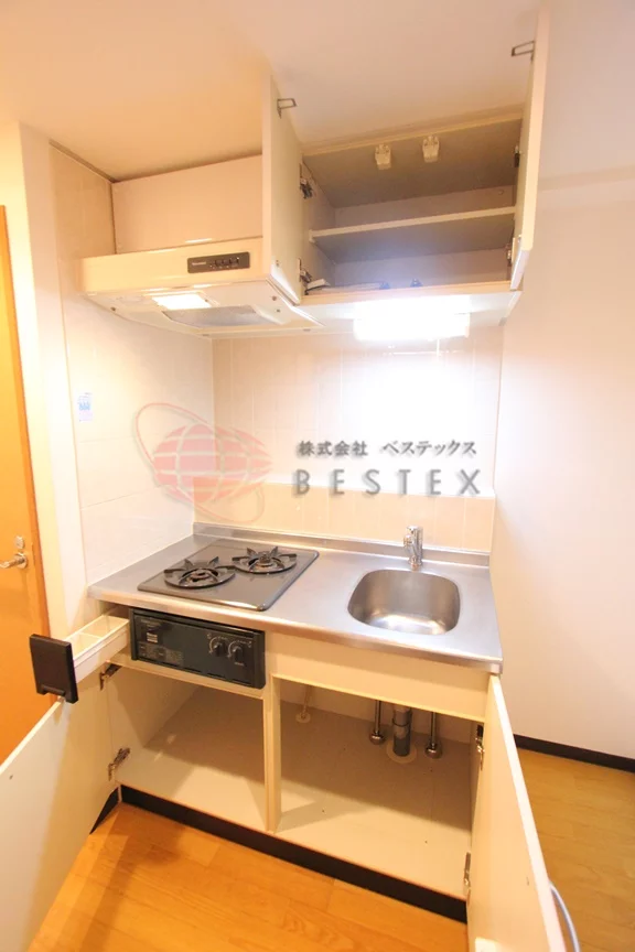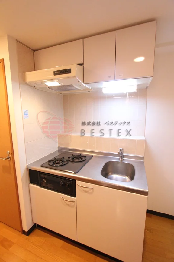 キッチンは2口のガスシステムキッチンで、お料理も快適に行なえます。収納も十分備わっているので、食器や調理器具が多めの方でも安心です!