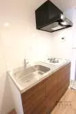 廊下部分のキッチンは2口ガスコンロのシステムキッチンを採用!お料理もはかどり、収納スペースも完備されているので食器類も片付いて使い勝手良好♪