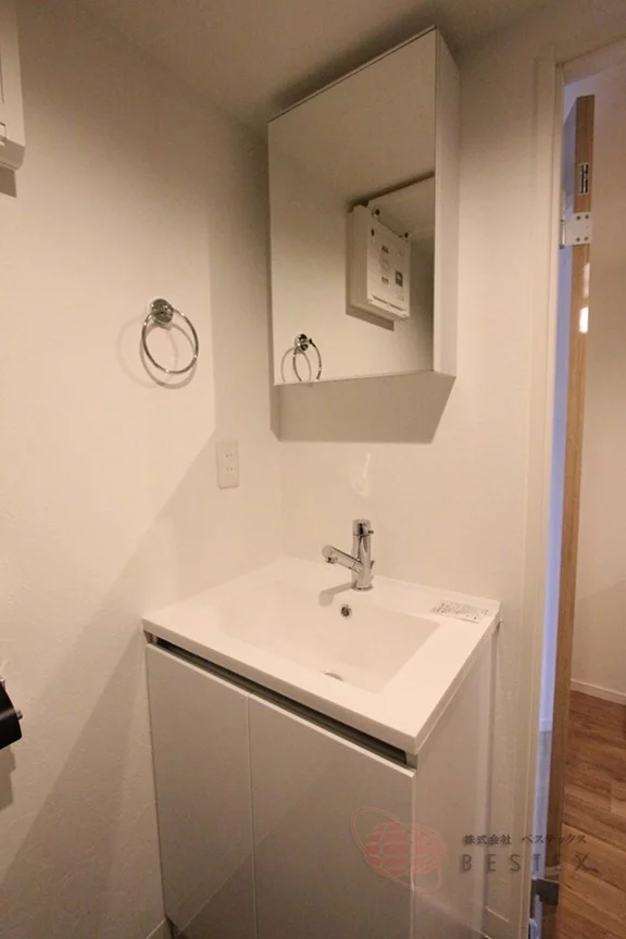 キッチンの向かい側、洗面室にはトイレ・室内洗濯機置場・独立洗面台を完備!トイレには温水洗浄便座付きで、人気の独立洗面台は朝の身支度などもスムーズに行なえます♪