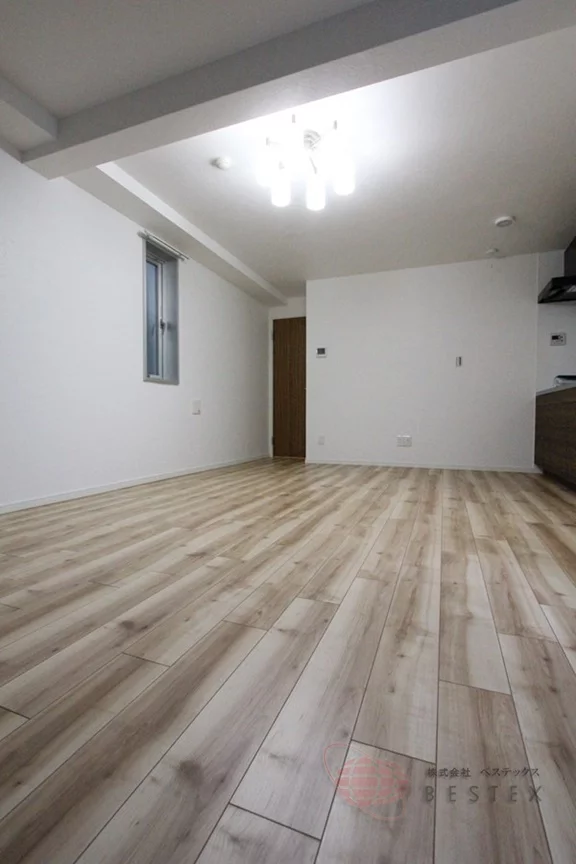 LDKは12.74帖とゆとりある空間で、角部屋ということで二面採光になっています。リビングダイニングの広さも十分で、ダイニングテーブルをはじめとした家具類も余裕を持って配置可能です。