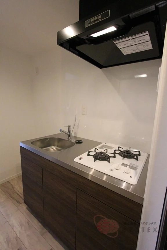 廊下部分のキッチンは2口ガスコンロのシステムキッチンを採用!お料理もはかどり、収納スペースも完備されているので食器類も片付いて使い勝手良好♪