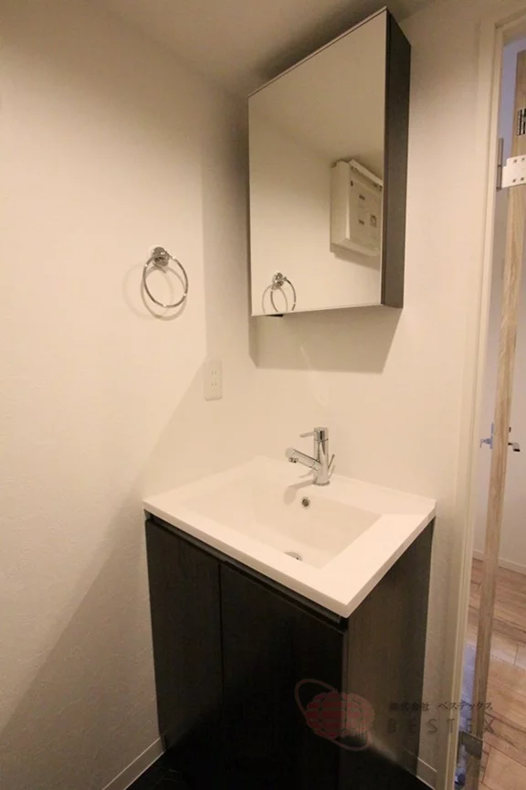 キッチンの向かい側、洗面室にはトイレ・室内洗濯機置場・独立洗面台を完備!トイレには温水洗浄便座付きで、人気の独立洗面台は朝の身支度などもスムーズに行なえます♪