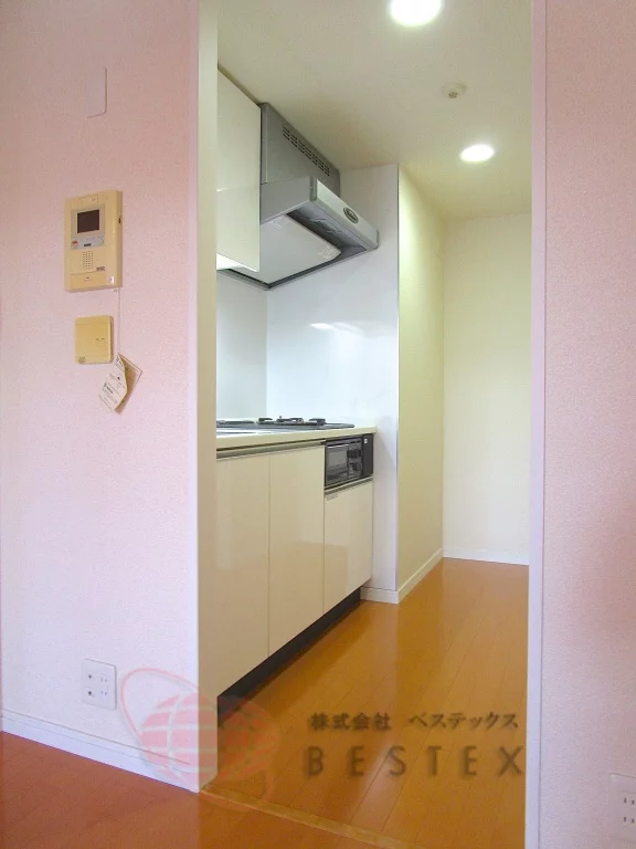 人気のシステムキッチンにはグリル付き2口ガスコンロが完備されております。そばには扉付き収納が配置されているのでパントリーとしてお使い頂けます。